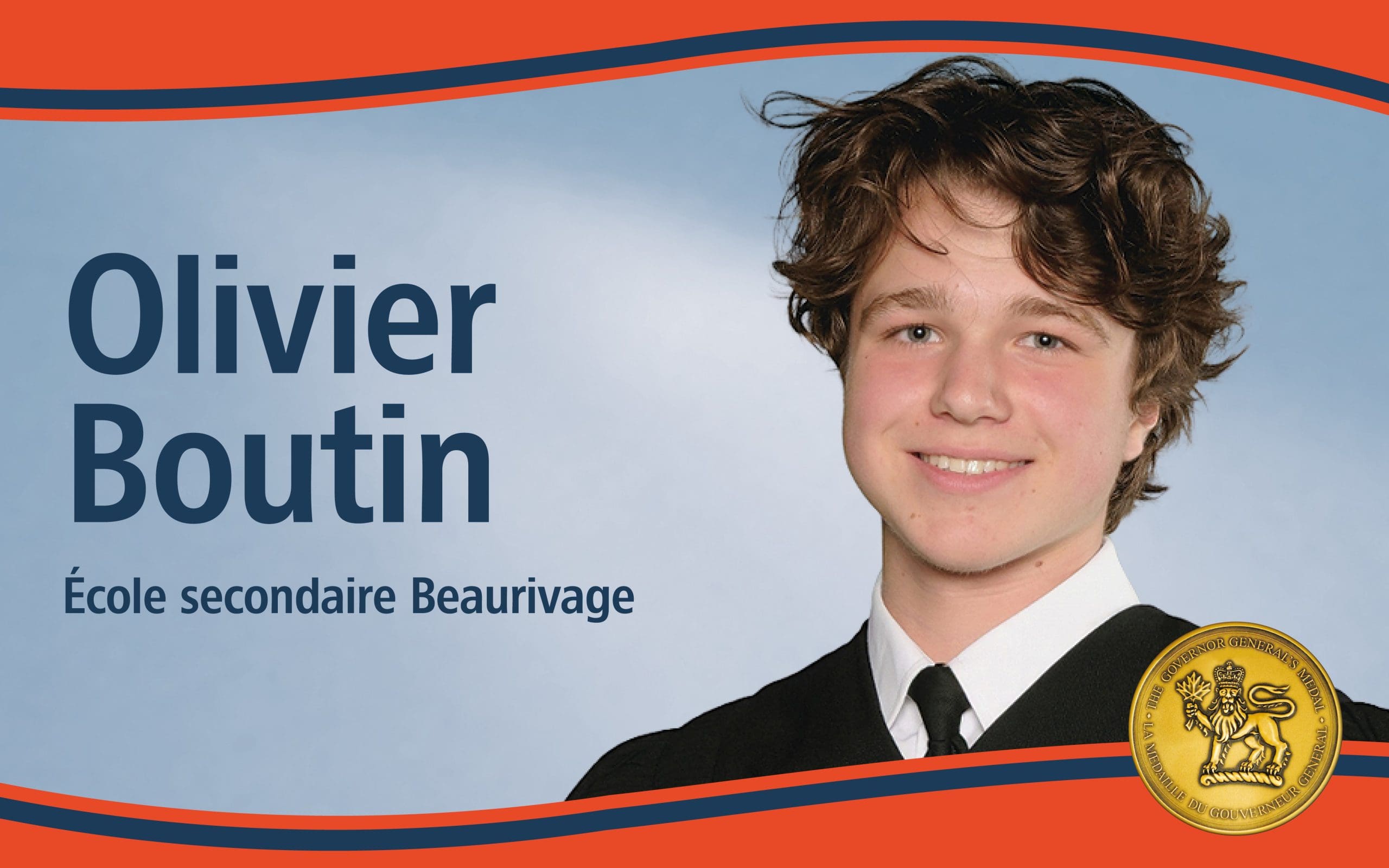 En savoir plus : Olivier Boutin, école secondaire Beaurivage – Récipiendaire de la Médaille du Gouverneur général 2025Sa capacité à demeurer centré, à apprendre avec passion et à interagir avec bienveillance a marqué celles et ceux qui ont eu le privilège de l’accompagner. Nous saluons non seulement ses accomplissements, mais aussi l’être humain exceptionnel qu’il est devenu.
