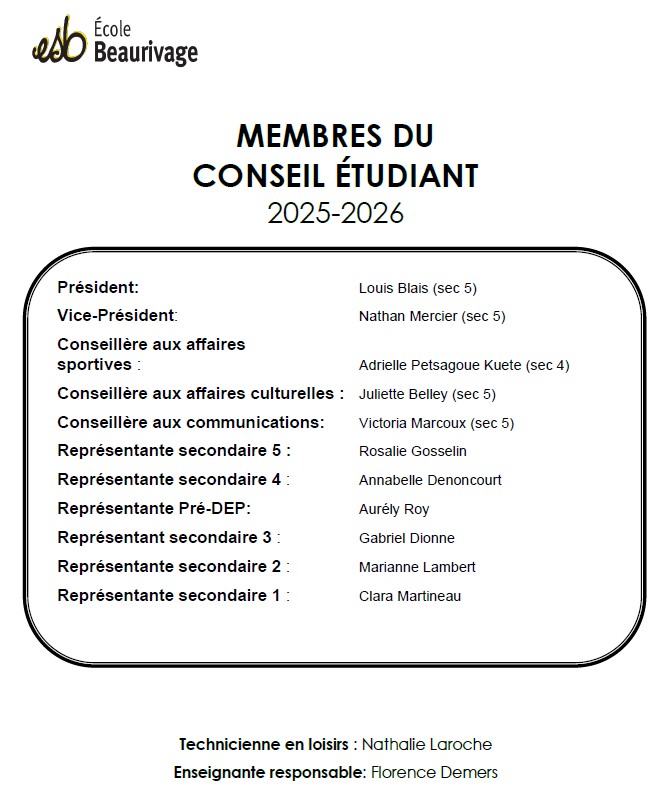 Membres du conseil étudiant 2025-2026