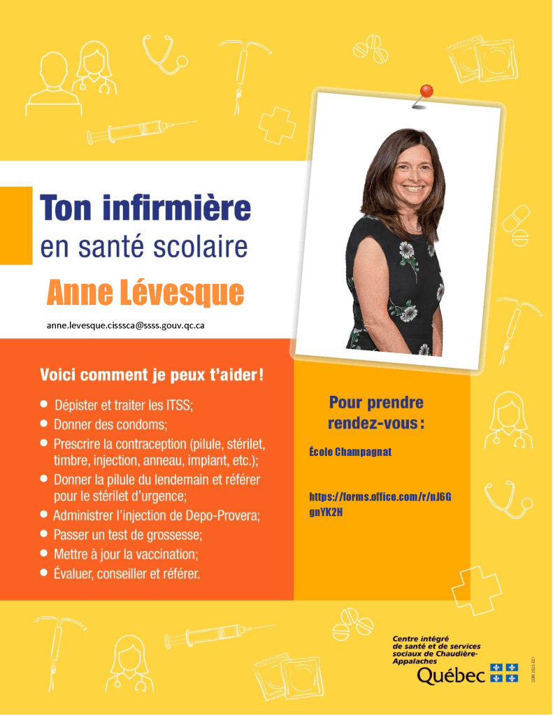 Vous pouvez prendre un rendez-vous avec votre infirmière d’école