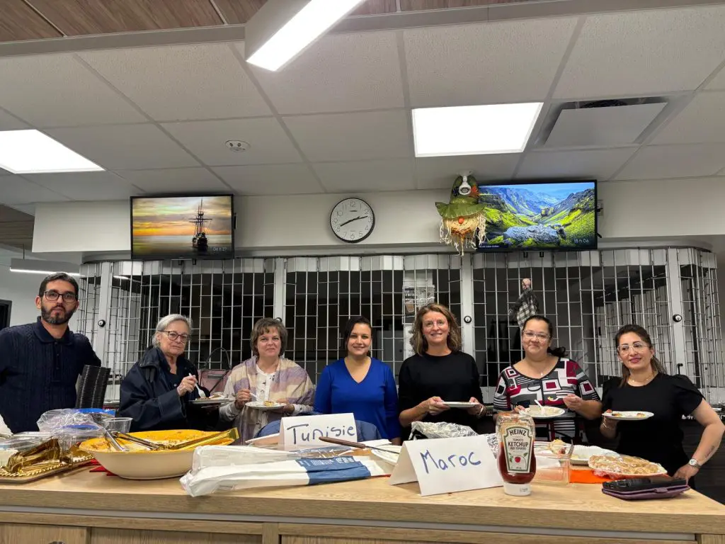 🌍 Pour clore la première session de francisation et dans le cadre de la Semaine québécoise des rencontres interculturelles du 3 au 9 novembre 2025, les élèves et le personnel enseignant de quatre groupes du centre d’éducation des adultes des Navigateurs (CÉAN) ont pris part, le mardi 28 octobre en soirée, à une activité culinaire des plus sympathiques. Chacun était invité à préparer un plat traditionnel de son pays et à le partager lors d’un souper convivial.