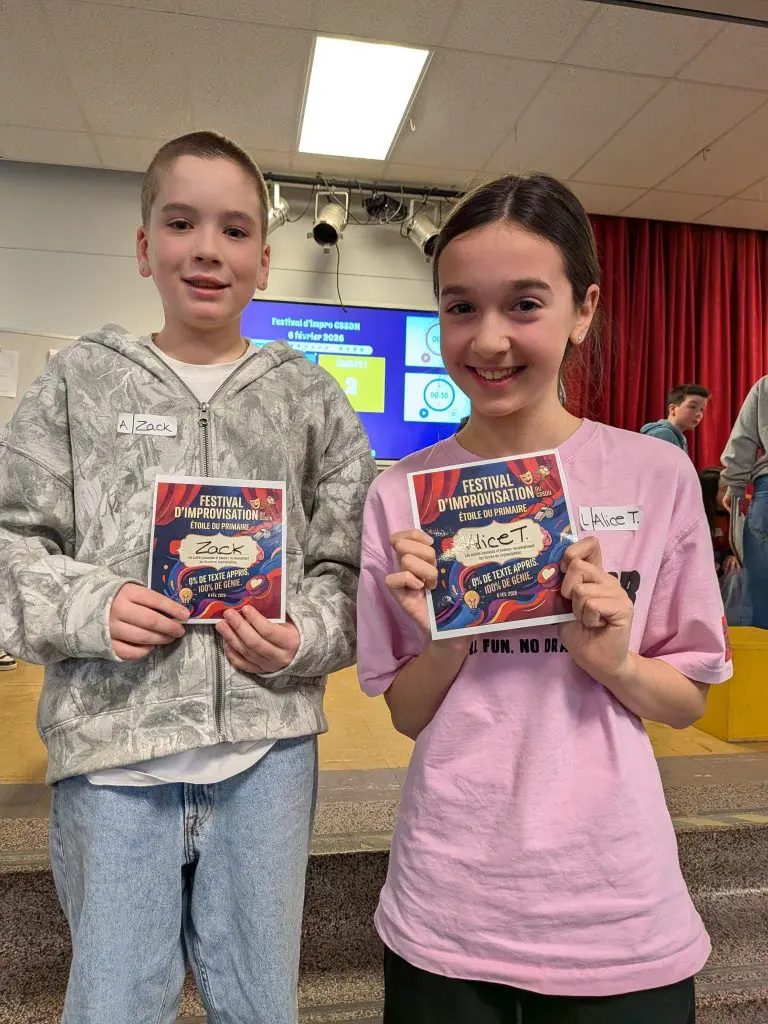 Moment fort du Festival de l’improvisation 2026 : des joueurs et joueuses du primaire, récipiendaires d’étoiles, ont même eu la chance de se mesurer à leurs aînés du secondaire!