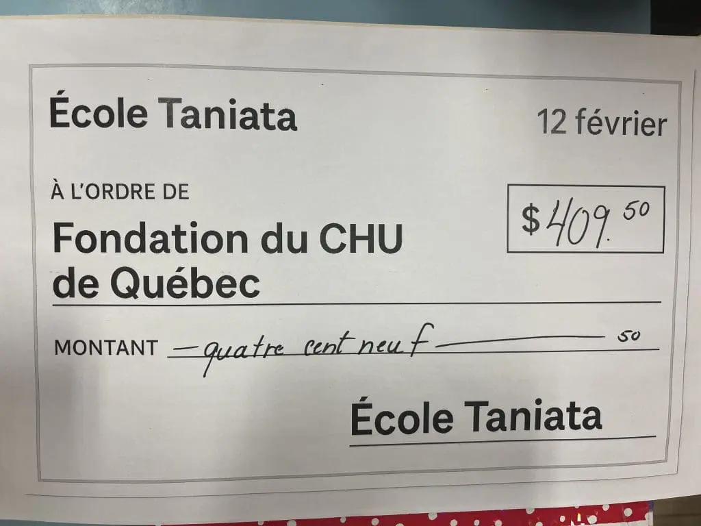 À l’école de Taniata, le jeudi 12 février dernier, le comité littératie a organisé un moment de lecture pour toute l’école. Cette activité a été appelée « La pause en rose pour une bonne cause ». Les dons amassés seront remis à la Fondation du CHU de Québec, un montant total de 409,50 $ leur sera remis.