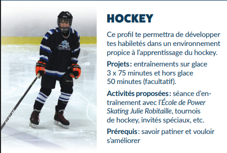 Le profil Hockey s’adresse autant aux élèves débutants qu’aux plus avancés.