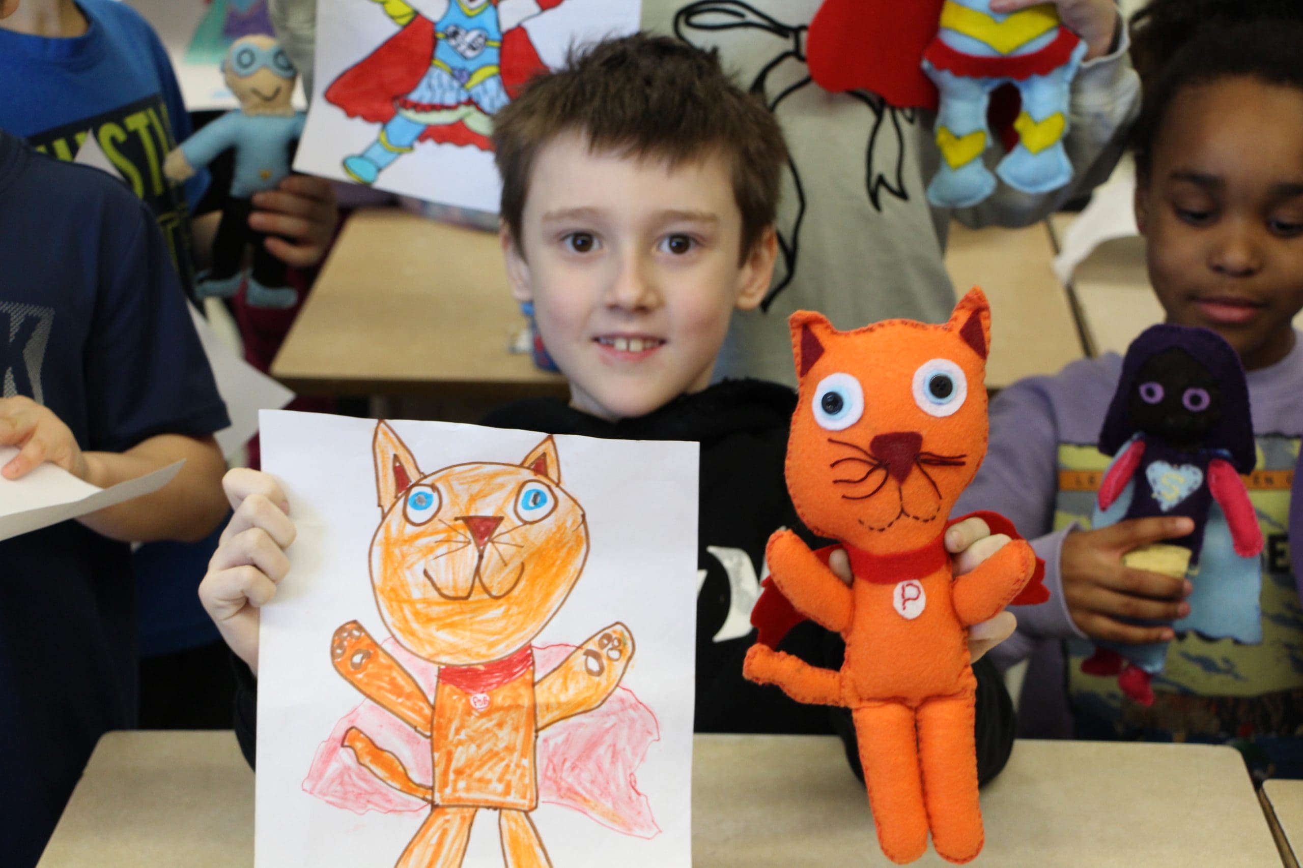 En savoir plus : Créer des superhéros : un projet commun entre Plein-Soleil et l’ESLELes petits artistes, qui ont imaginé et dessiné des superhéros originaux, ont pu voir leurs dessins devenir réalité lors de la remise officielle des toutous, le vendredi 14 mars dernier, dans leur classe, accompagnés de leur enseignante, Mme Sylvie Bard. Les expressions de joie et d’émerveillement étaient au rendez-vous!