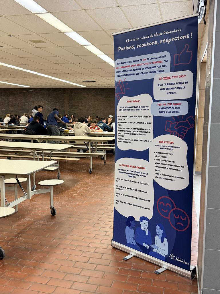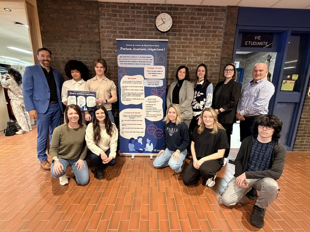 Dans le cadre de la Semaine de prévention de la violence et de l’intimidation dans les écoles, l’école Pointe-Lévy est fière d’annoncer le lancement officiel de sa toute nouvelle charte de civisme, une initiative rassembleuse visant à promouvoir un climat scolaire respectueux, sécuritaire et positif pour l’ensemble de sa communauté.