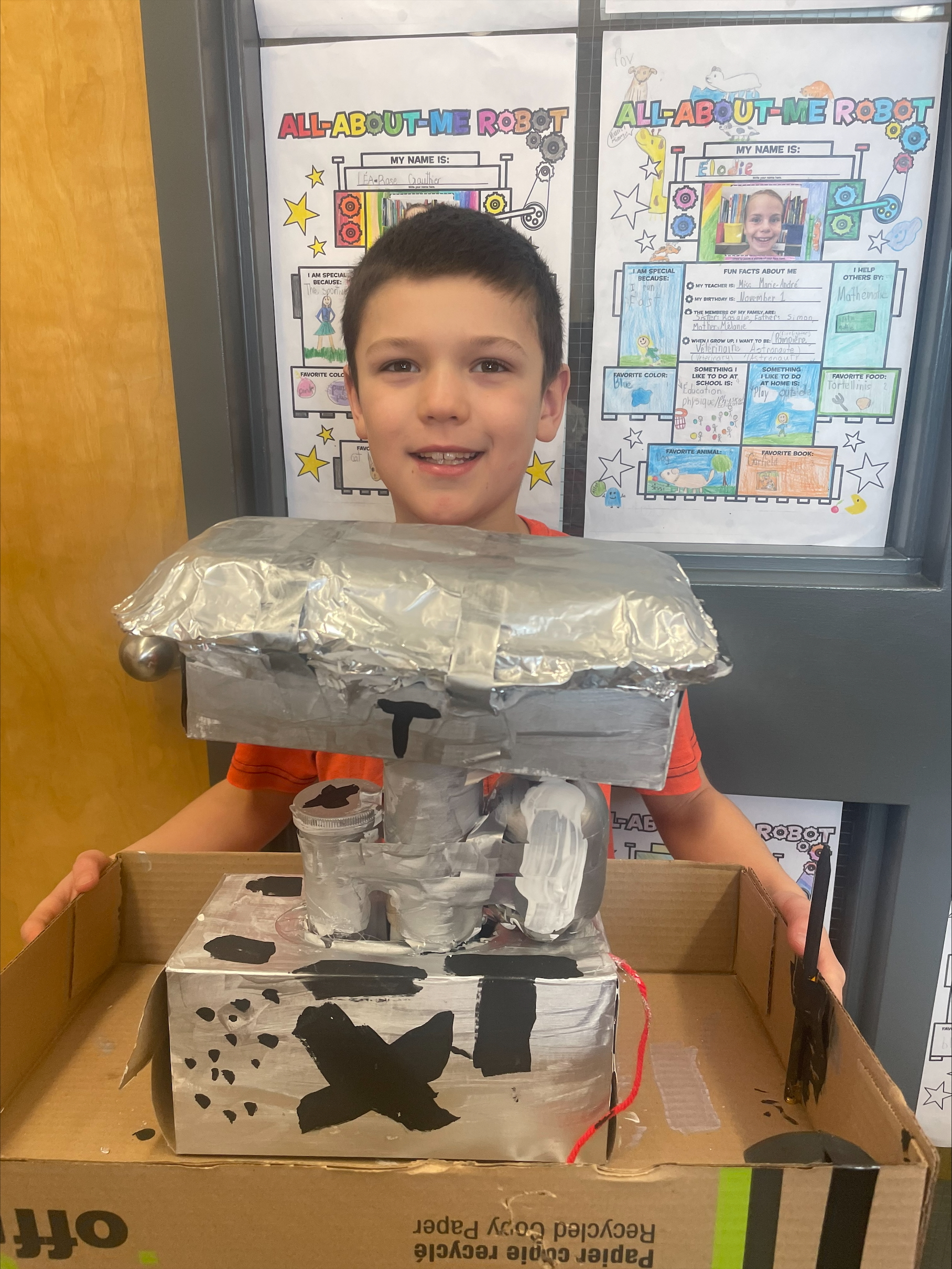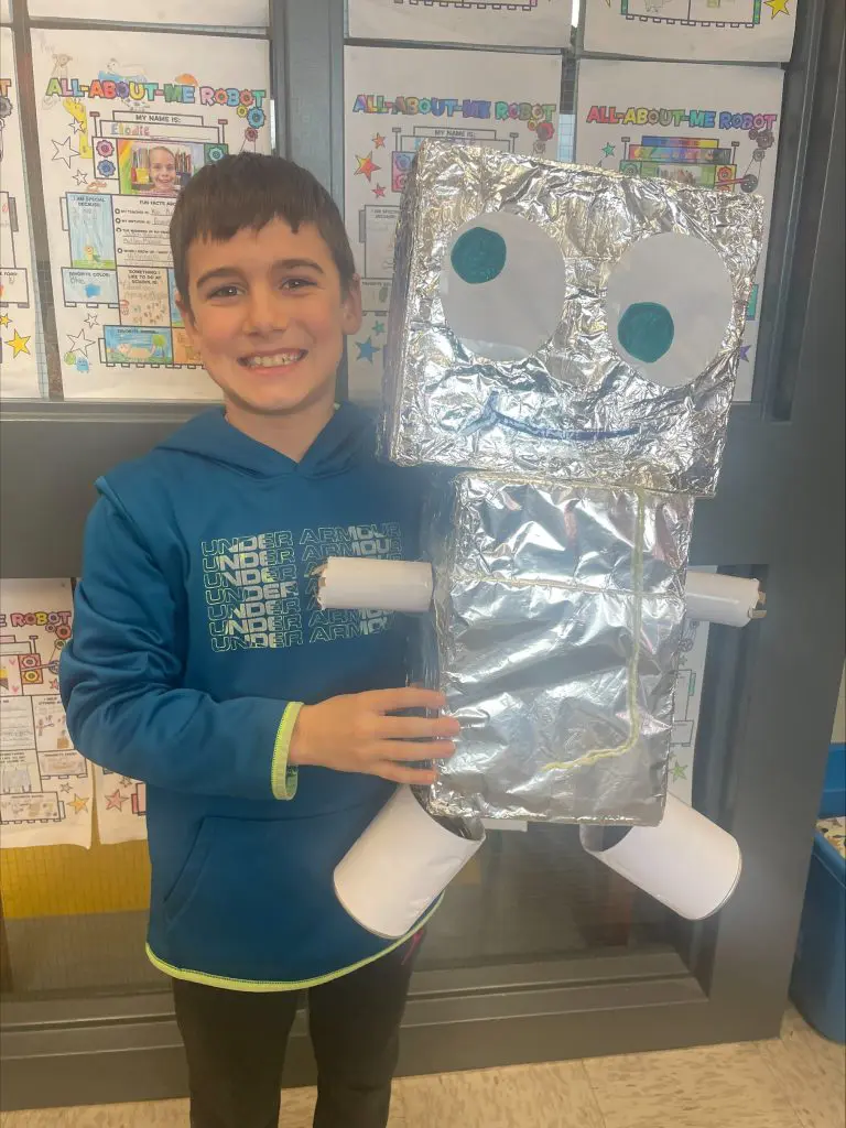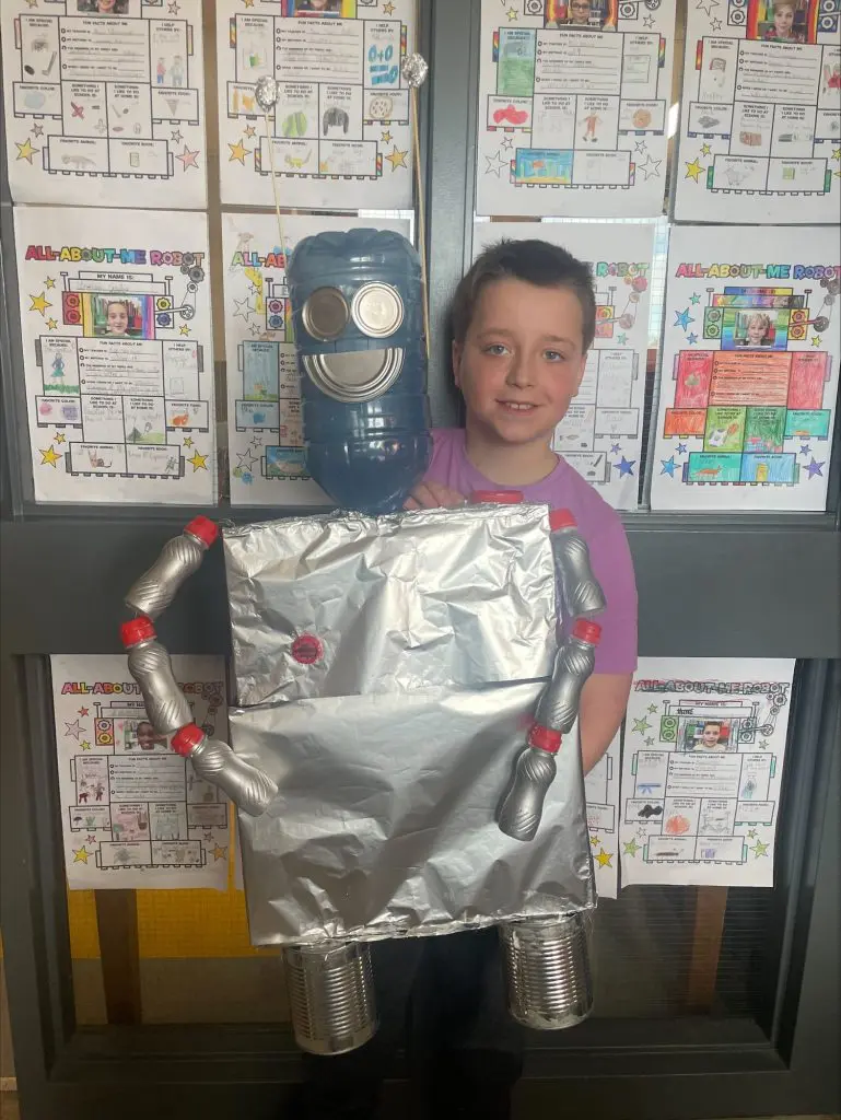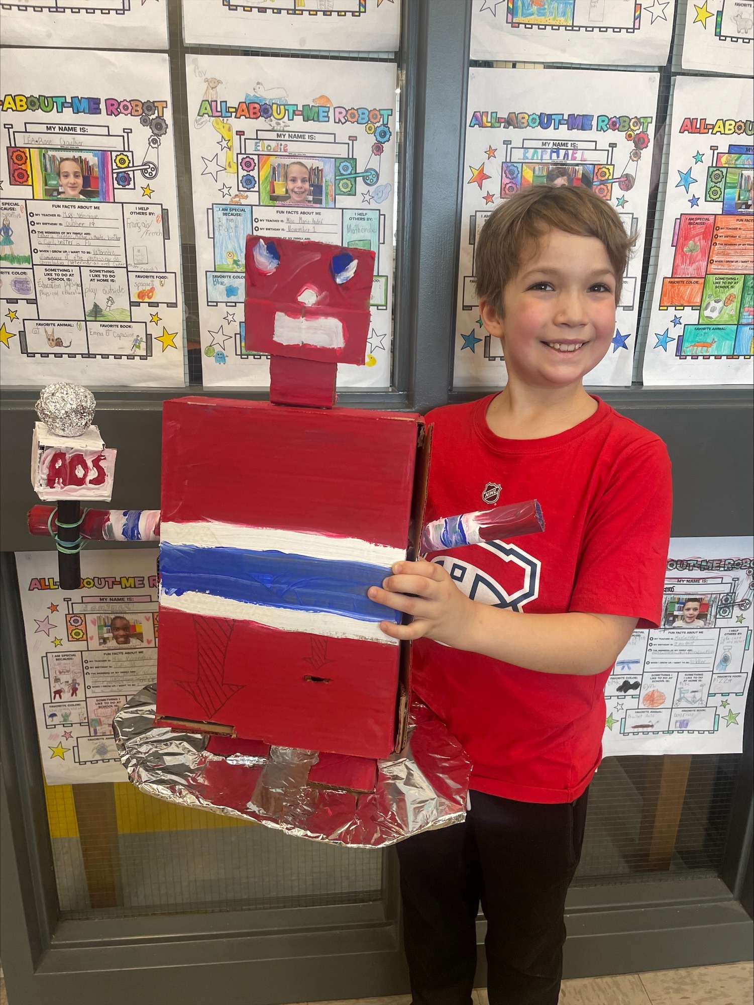 Dans le cadre de leur cours d’anglais, les élèves de 4e année de l’école Sainte-Hélène, ont relevé un défi aussi ludique qu’enrichissant : créer un robot à partir de matériel recyclable, accumulé depuis le congé des Fêtes.