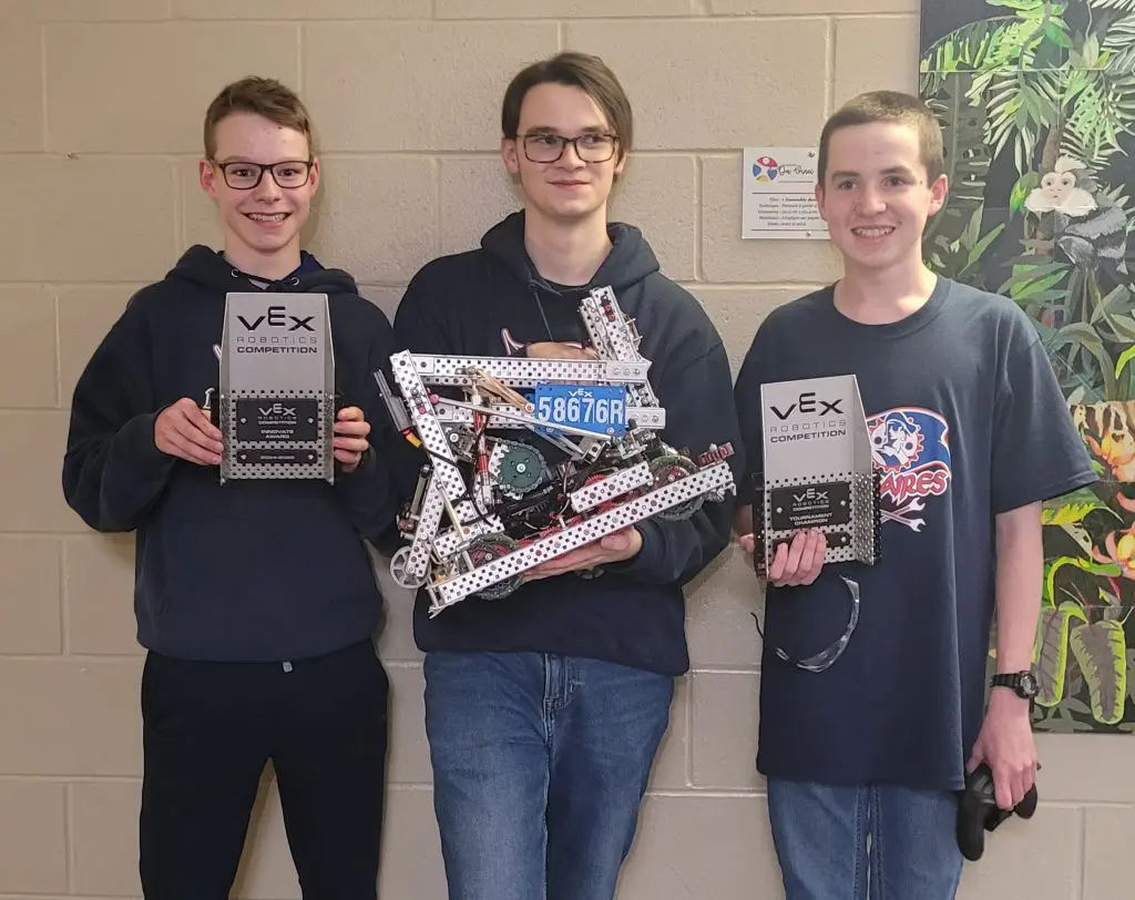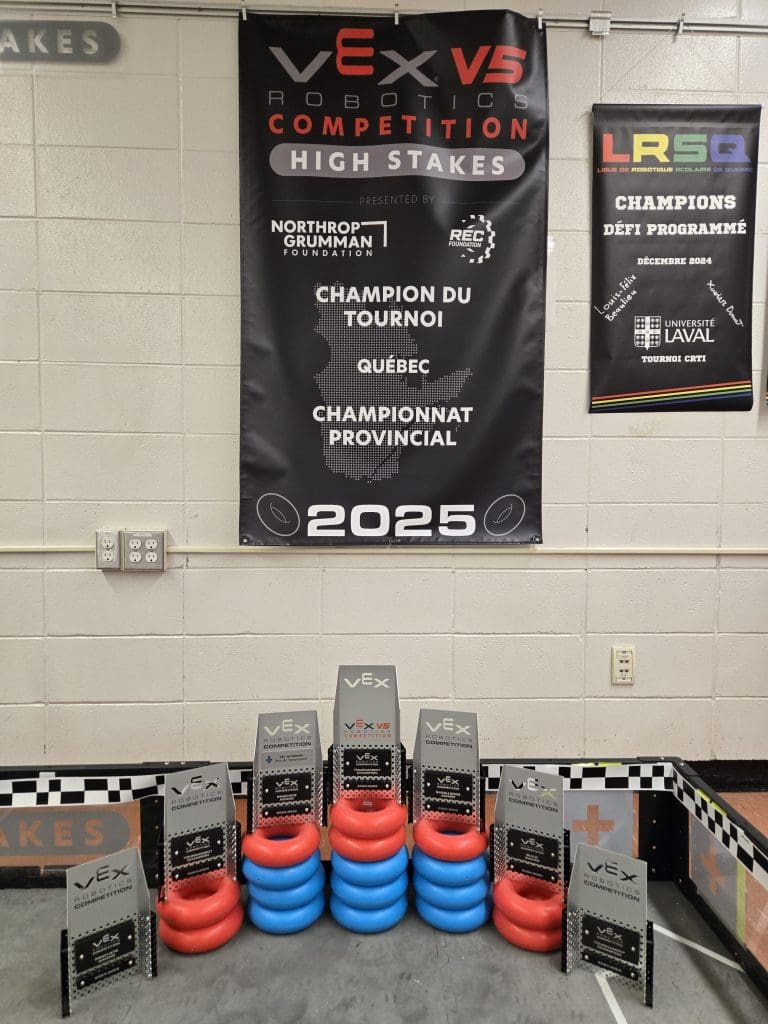 Il y a trois ans, la ligue de robotique VEX nous était totalement inconnue. Après deux années d’expériences diverses dans les compétitions régionales, canadiennes et mondiales de la WRO à l’école Guillaume-Couture, nous n’avions aucune attente lorsque notre garçon est arrivé à Pointe-Lévy. Le défi de la saison nous semblait étrange. Les garçons tentaient simplement de suivre la parade, dominée par les autres écoles plus expérimentées du circuit québécois.