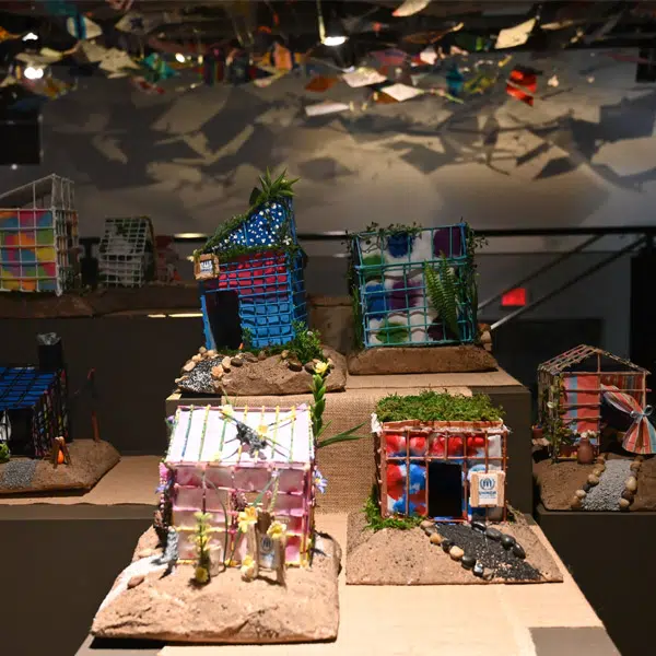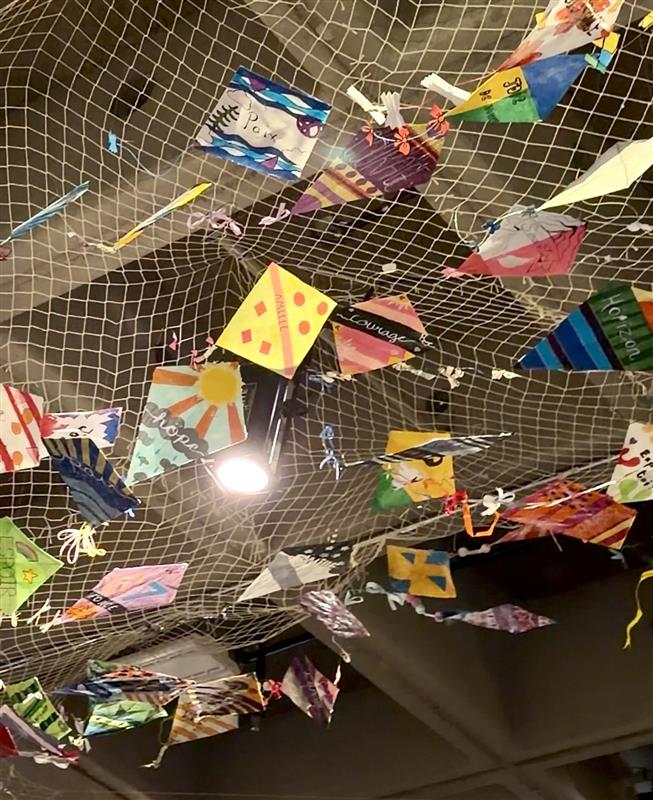L’exposition s’est ensuite développée autour de quatre projets artistiques pour lesquels des enseignantes et enseignants en français, en art dramatique et en musique ont également donné leur soutien. À travers la confection de petits refuges colorés, de broderies sur des photos de camps de réfugiés, de cerfs-volants porteurs d’espoir et de haïkus évocateurs, les jeunes de secondaire un à trois et de classes d’adaptation scolaire expriment leurs visions et leurs émotions face aux réalités de l’exil, du déracinement et du refuge. Individuellement, chaque œuvre porte un regard sensible et empreint d’empathie. Ensemble, elles révèlent la beauté de la solidarité et la force du lien humain. Cette exposition démontre que l’art permet d’entendre des voix trop souvent oubliées, de créer des ponts entre les cultures et de nourrir l’espoir d’un avenir meilleur.