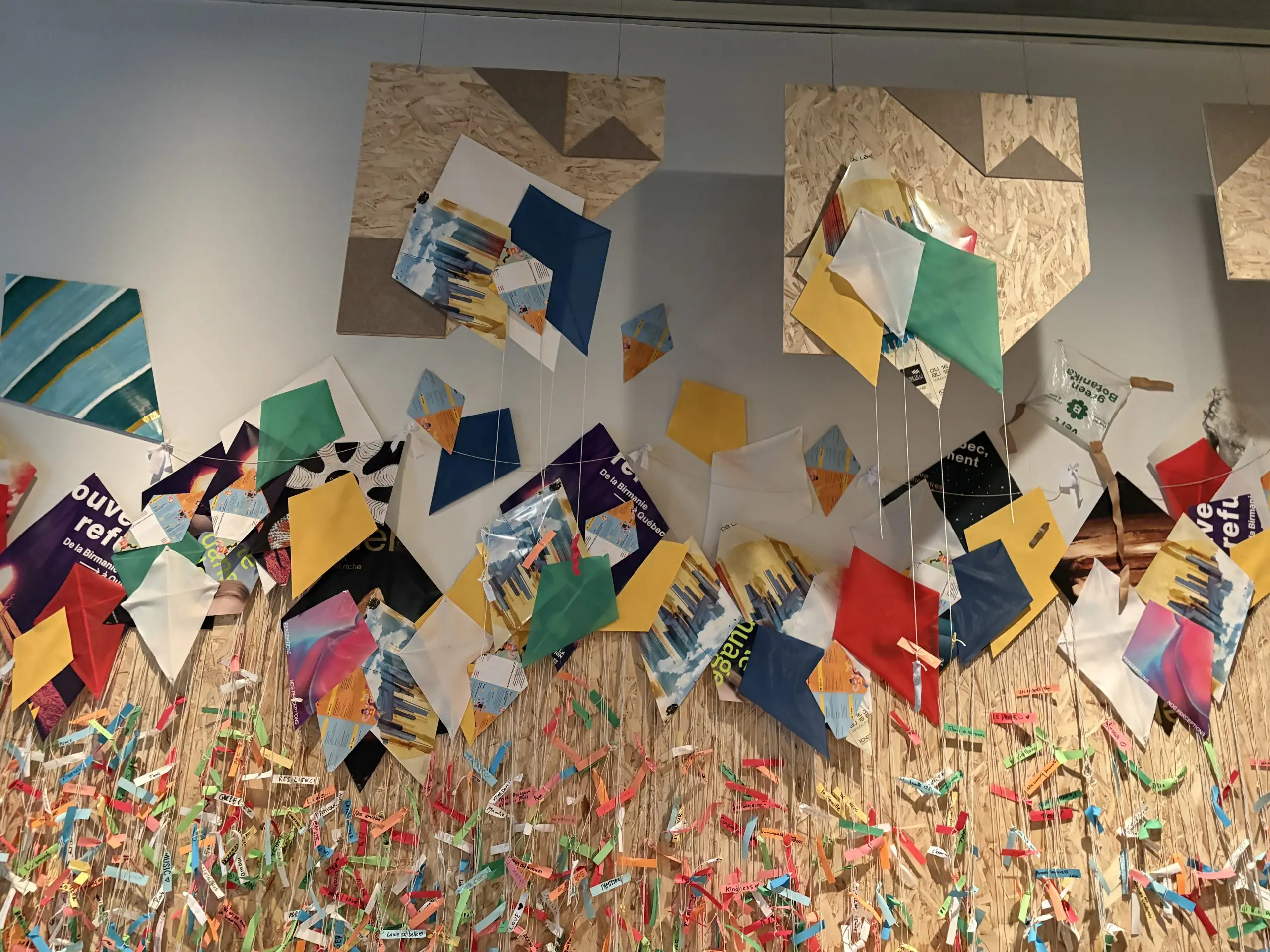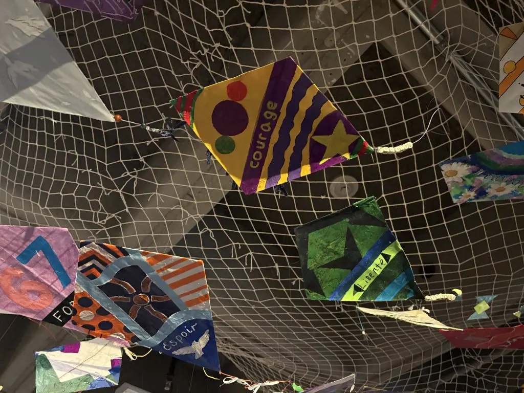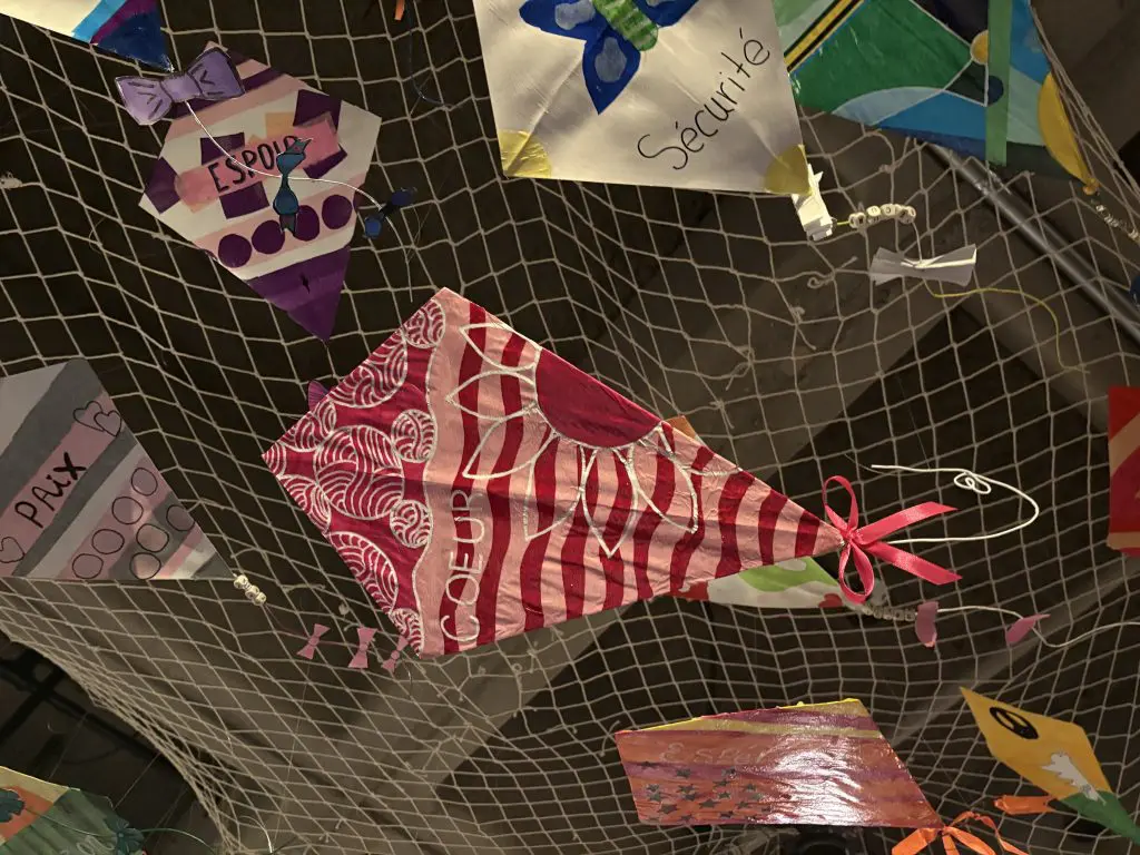 L’exposition s’est ensuite développée autour de quatre projets artistiques pour lesquels des enseignantes et enseignants en français, en art dramatique et en musique ont également donné leur soutien. À travers la confection de petits refuges colorés, de broderies sur des photos de camps de réfugiés, de cerfs-volants porteurs d’espoir et de haïkus évocateurs, les jeunes de secondaire un à trois et de classes d’adaptation scolaire expriment leurs visions et leurs émotions face aux réalités de l’exil, du déracinement et du refuge. Individuellement, chaque œuvre porte un regard sensible et empreint d’empathie. Ensemble, elles révèlent la beauté de la solidarité et la force du lien humain. Cette exposition démontre que l’art permet d’entendre des voix trop souvent oubliées, de créer des ponts entre les cultures et de nourrir l’espoir d’un avenir meilleur.
