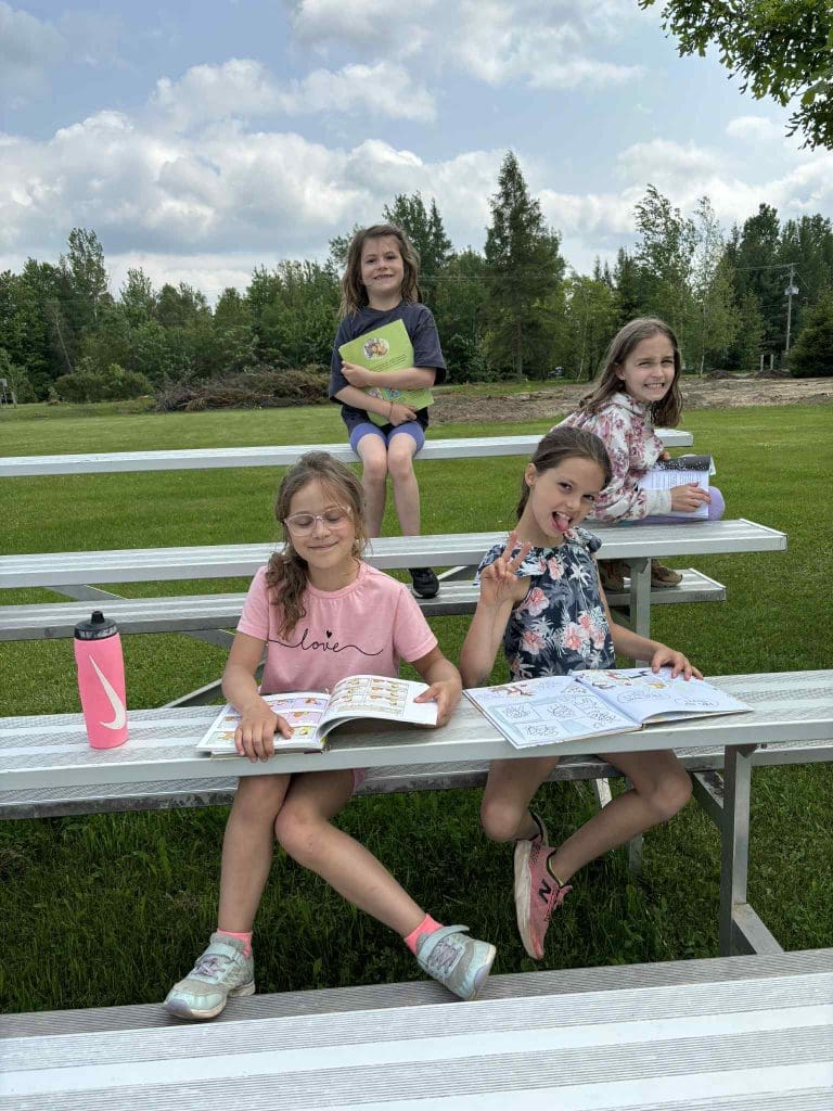 Toute l’école a pris part à une belle marche sous le soleil avant de s’installer au parc pour un moment de lecture paisible. Petits et grands ont plongé dans leur livre, entourés de nature et de sourires. Une activité qui fait du bien au corps, au cœur et à l’esprit!